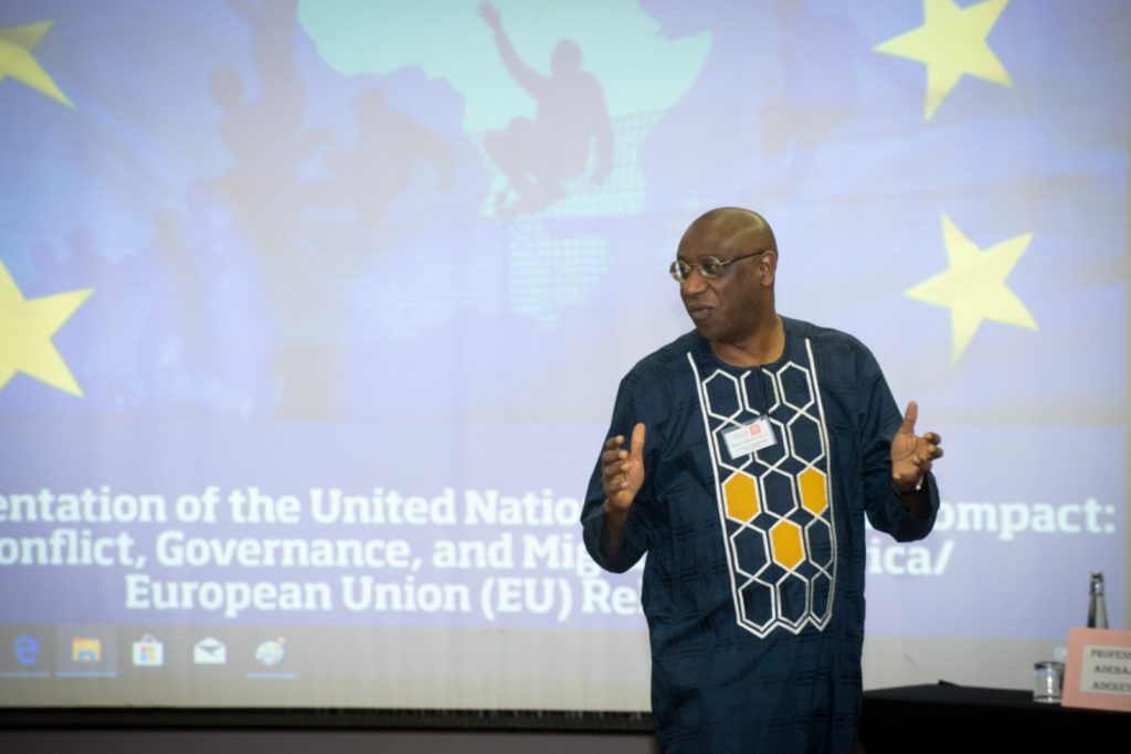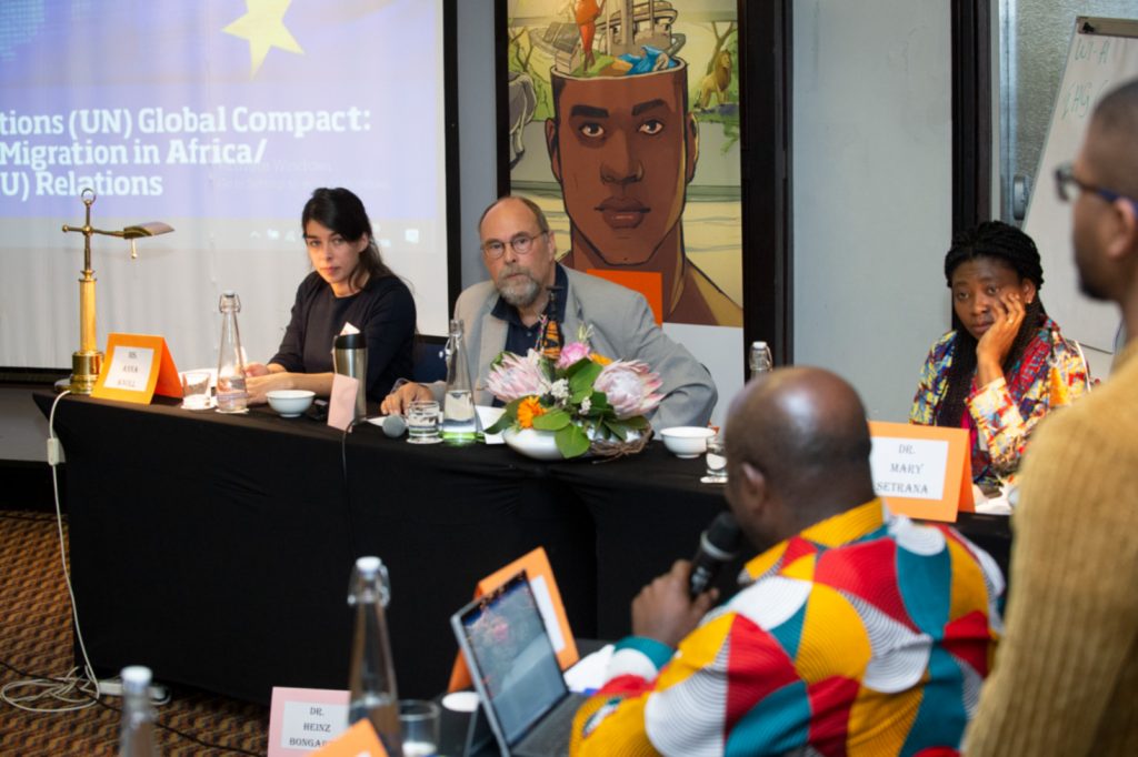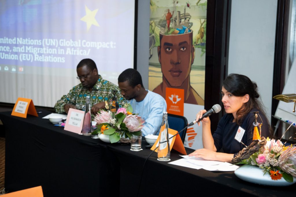 The University of Johannesburgās (UJ) Institute for Pan-African Thought and Conversation held a two-day policy seminar on āImplementation of The United Nations (UN) Global Compact: Conflict, Governance & Migration in Africa/EU Relationsā. This policy seminar was funded by the Institut für Auslandsbeziehungen (IFA). The University of Johannesburgās (UJ) Institute for Pan-African Thought and Conversation held a two-day policy seminar on āImplementation of The United Nations (UN) Global Compact: Conflict, Governance & Migration in Africa/EU Relationsā. This policy seminar was funded by the Institut für Auslandsbeziehungen (IFA).