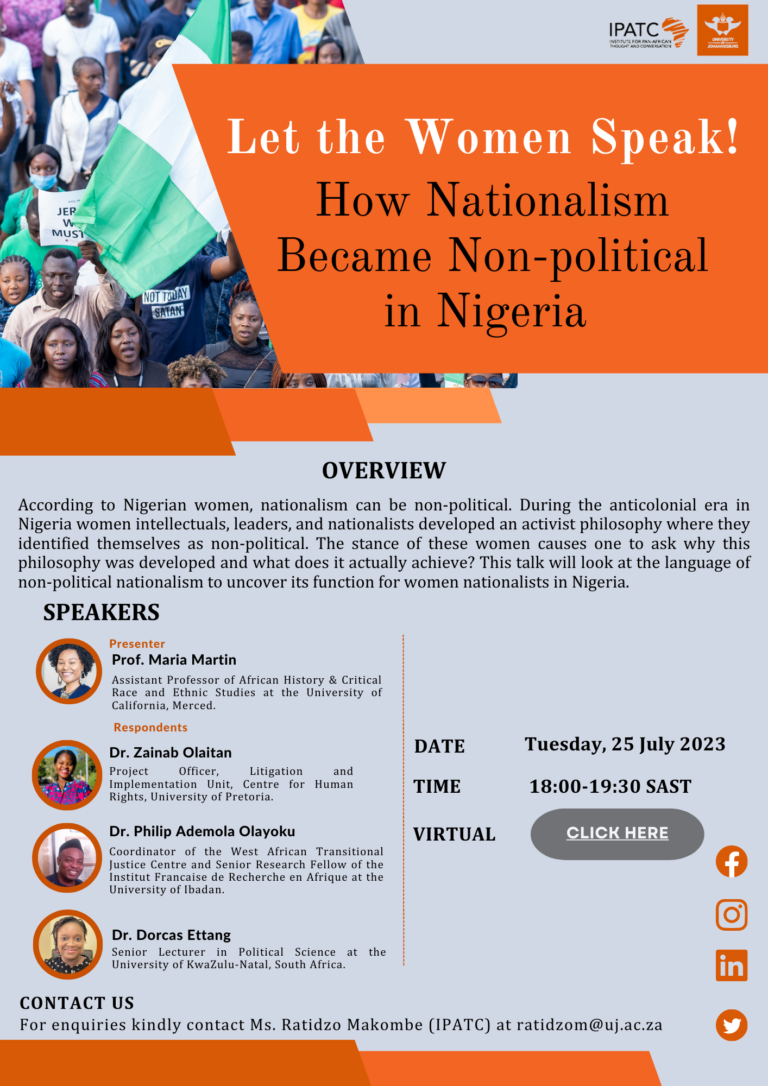 Let the Women Speak! How Nationalism Became Non-political in Nigeria. Read More » IPATC July 24, 2023