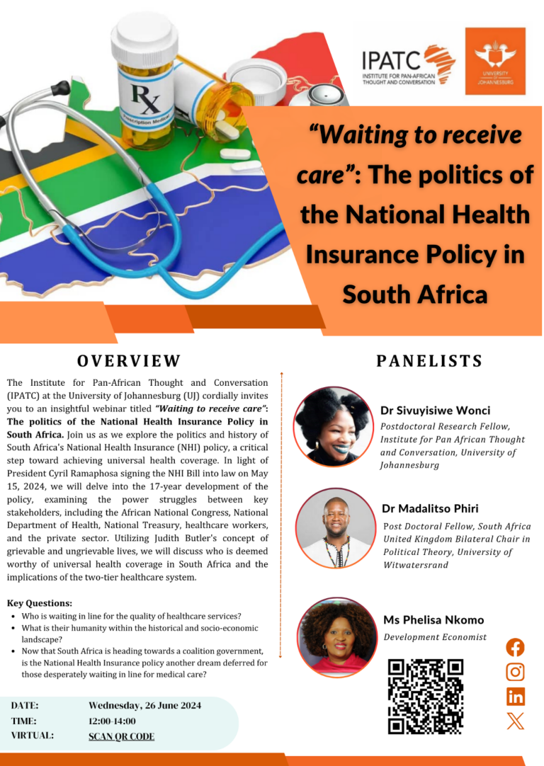 “Waiting to receive care” The Politics of the National Health Insurance Policy in South Africa Read More » IPATC October 24, 2024